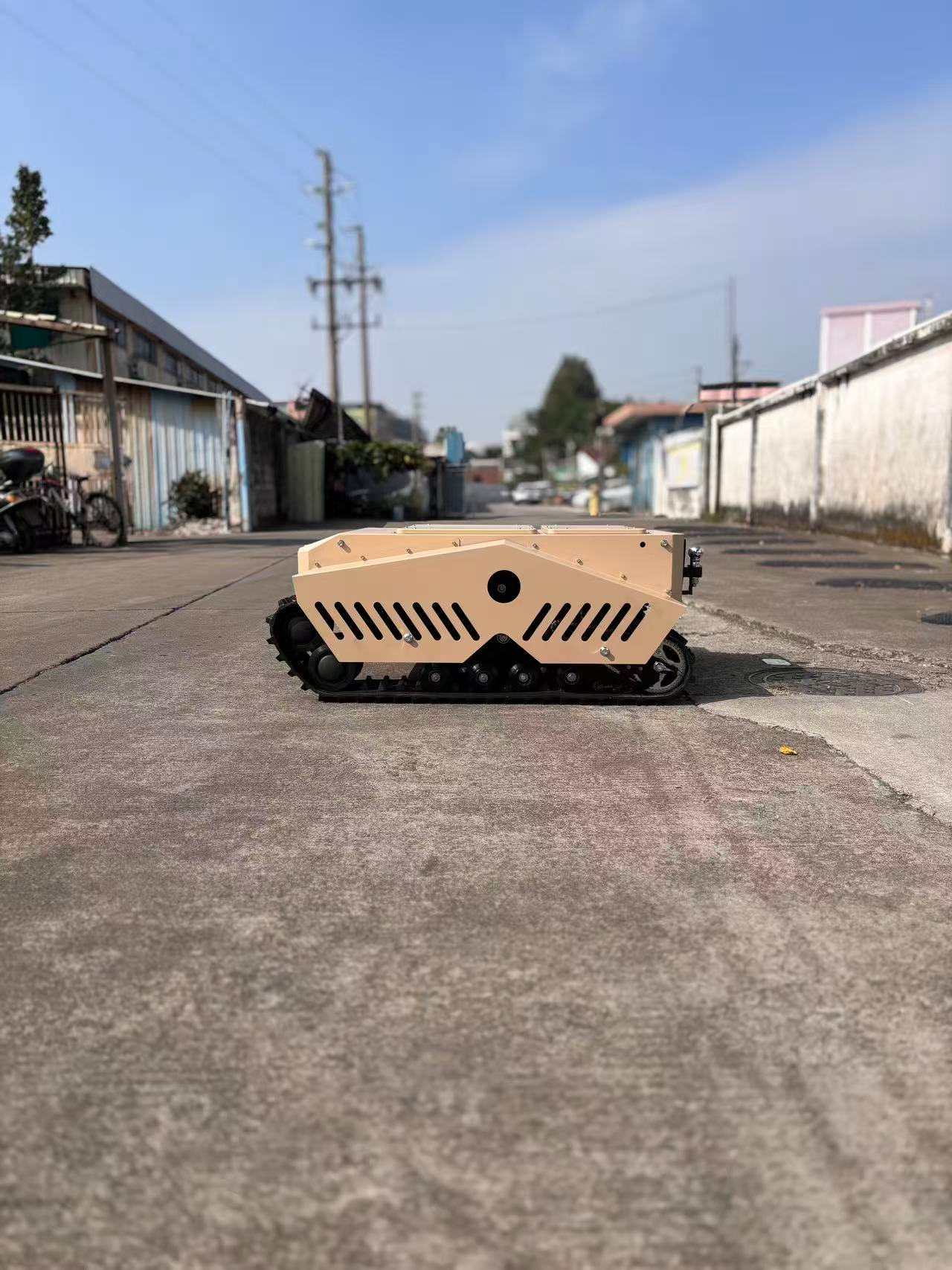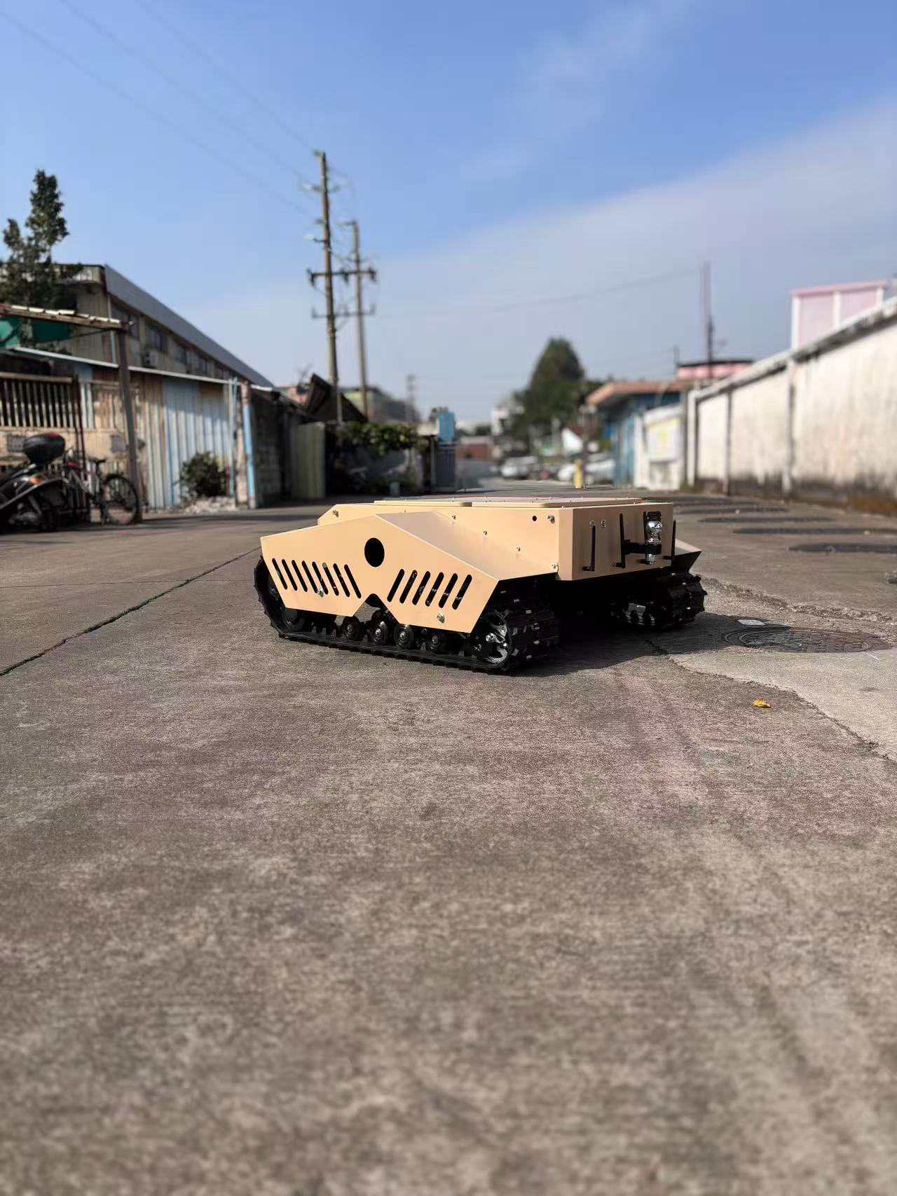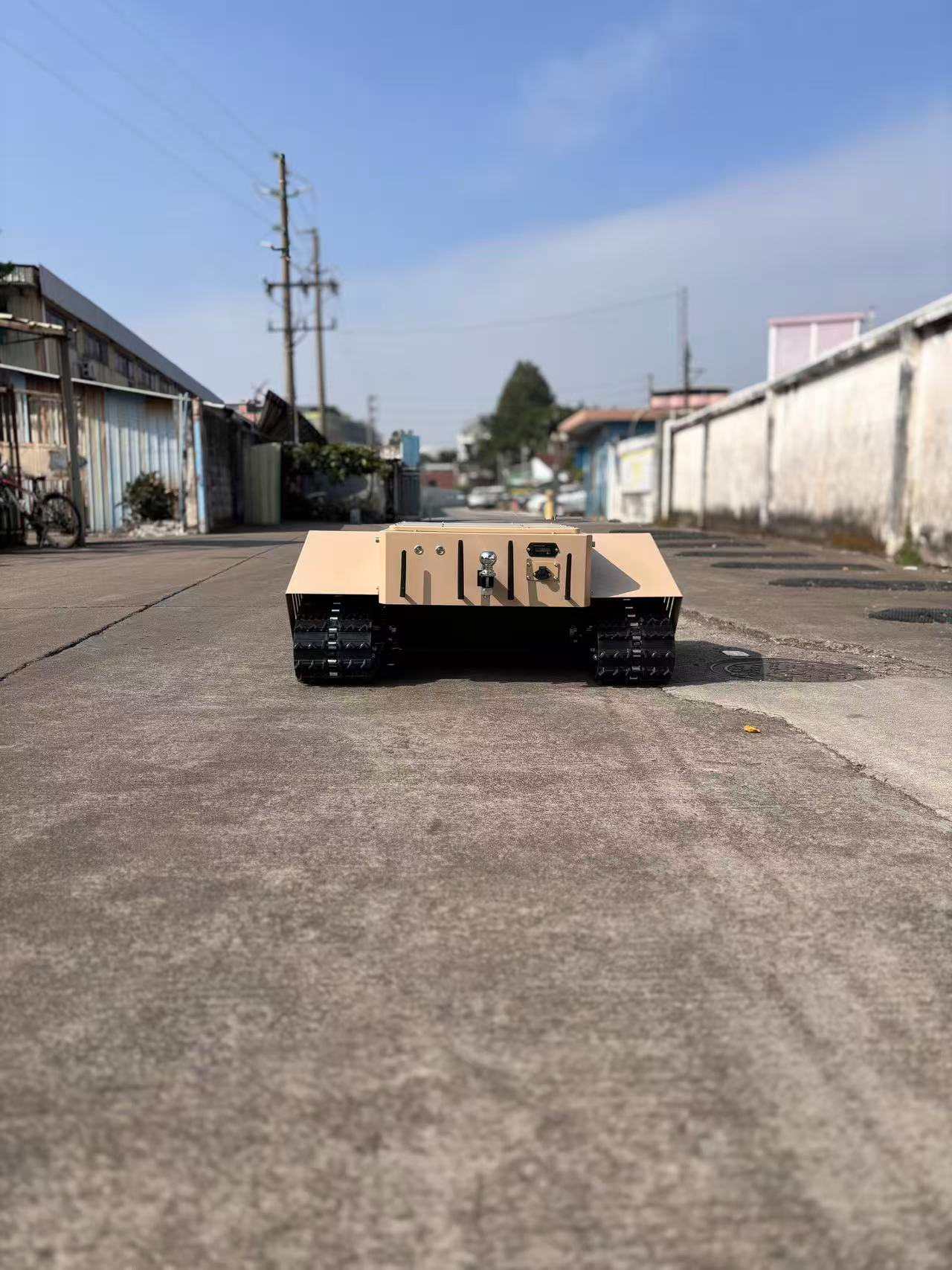 Alimentato da doppi motori da 3 kW di alta qualità e dotato di ampi cingoli, questo veicolo è perfetto per il trasporto su tutti i terreni.